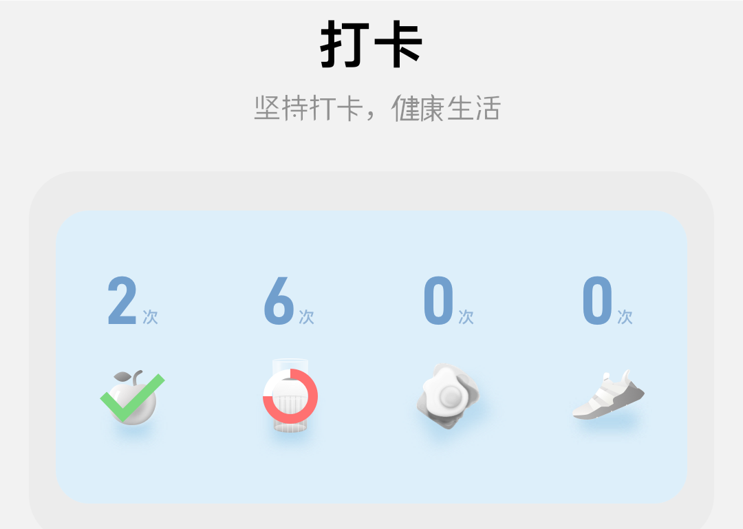 我们可以将自己生活中关注的行为习惯,如喝水、运动等作为打卡项,每日坚持打卡,养成良好的生活习惯。