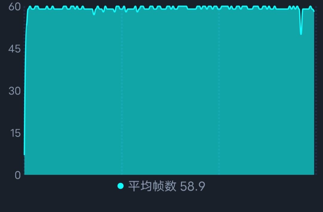 和平精英目前支持60hz,由于是新机,暂时未适配高刷,我们测的13分钟平均帧率为58.9。