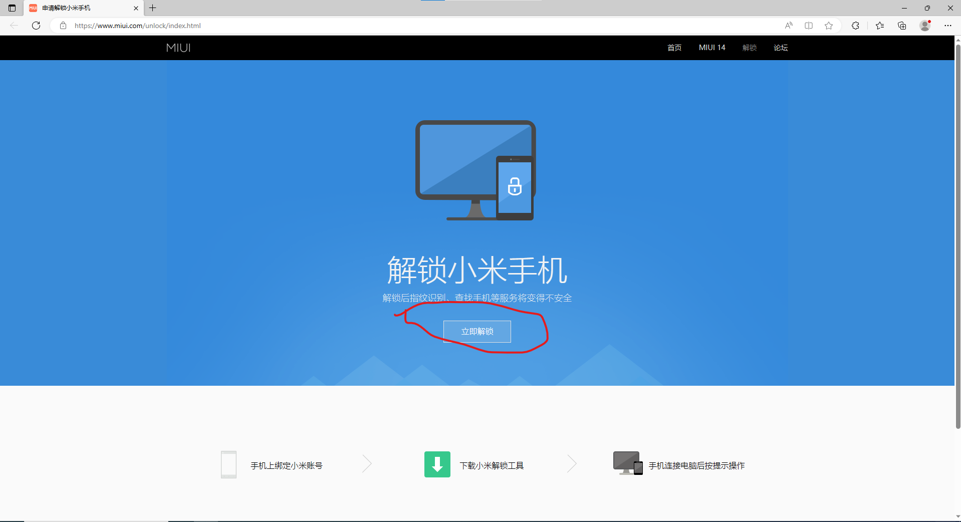 7.在电脑上下载mi unlock