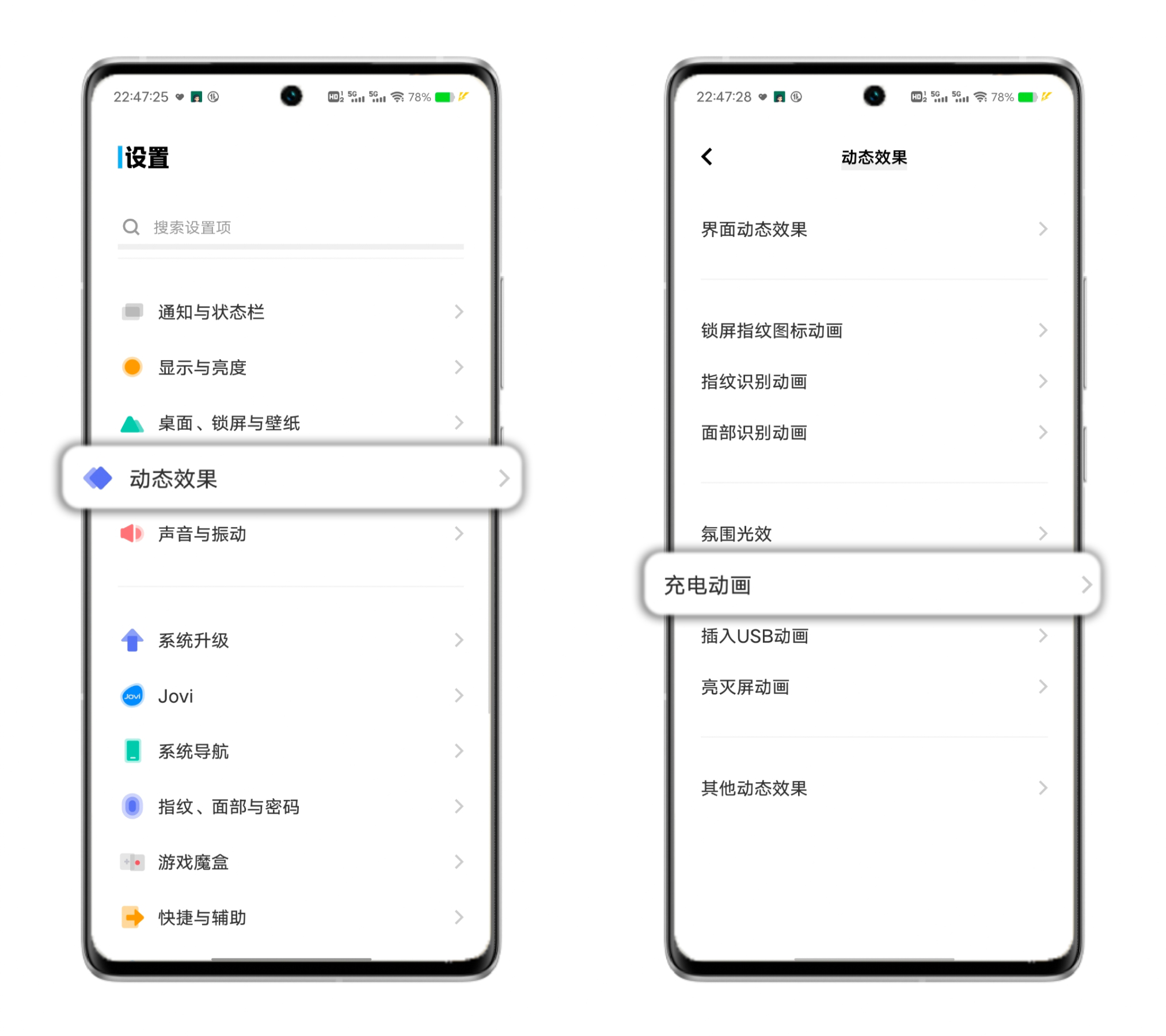 设置方法:设置-动态效果-充电动画
