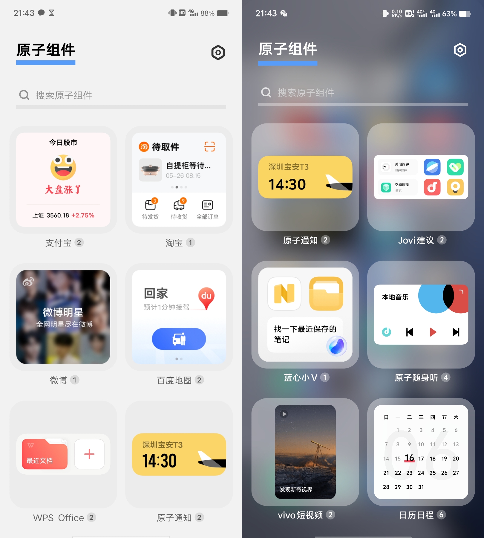 二级页面,标题文字靠左排列。(左OriginOS4)