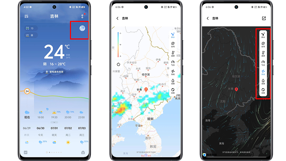 操作方法:天气-右上角“小圆圈”-点击右侧相应功能即可查看