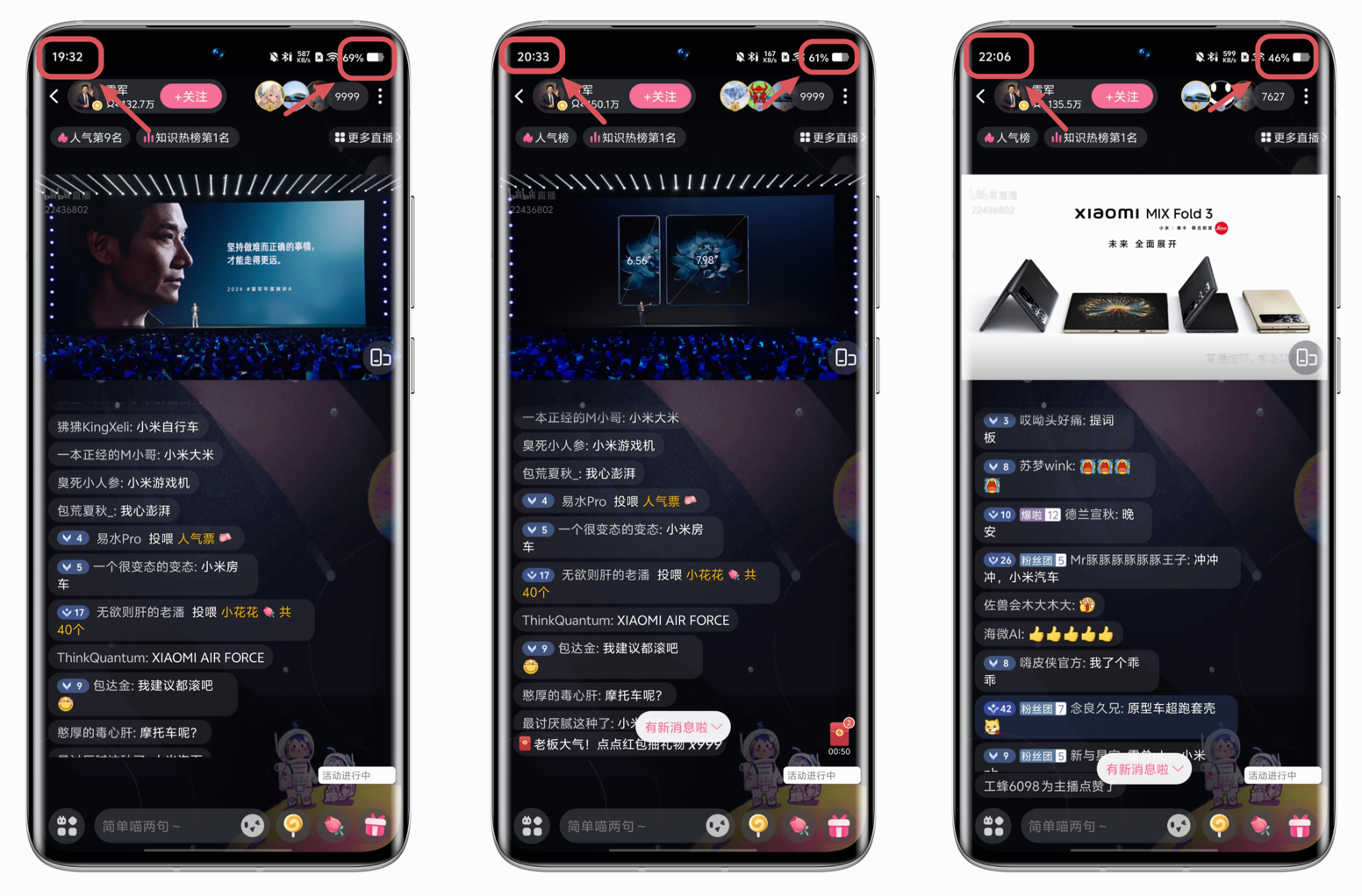 本次测试中,B站与抖音共使用4h35min。其中,B站原画质直播2h34min,B站视频与抖音视频共2h1min,B站消耗26%电量,抖音消耗13%电量,两者共消耗39%电量。
