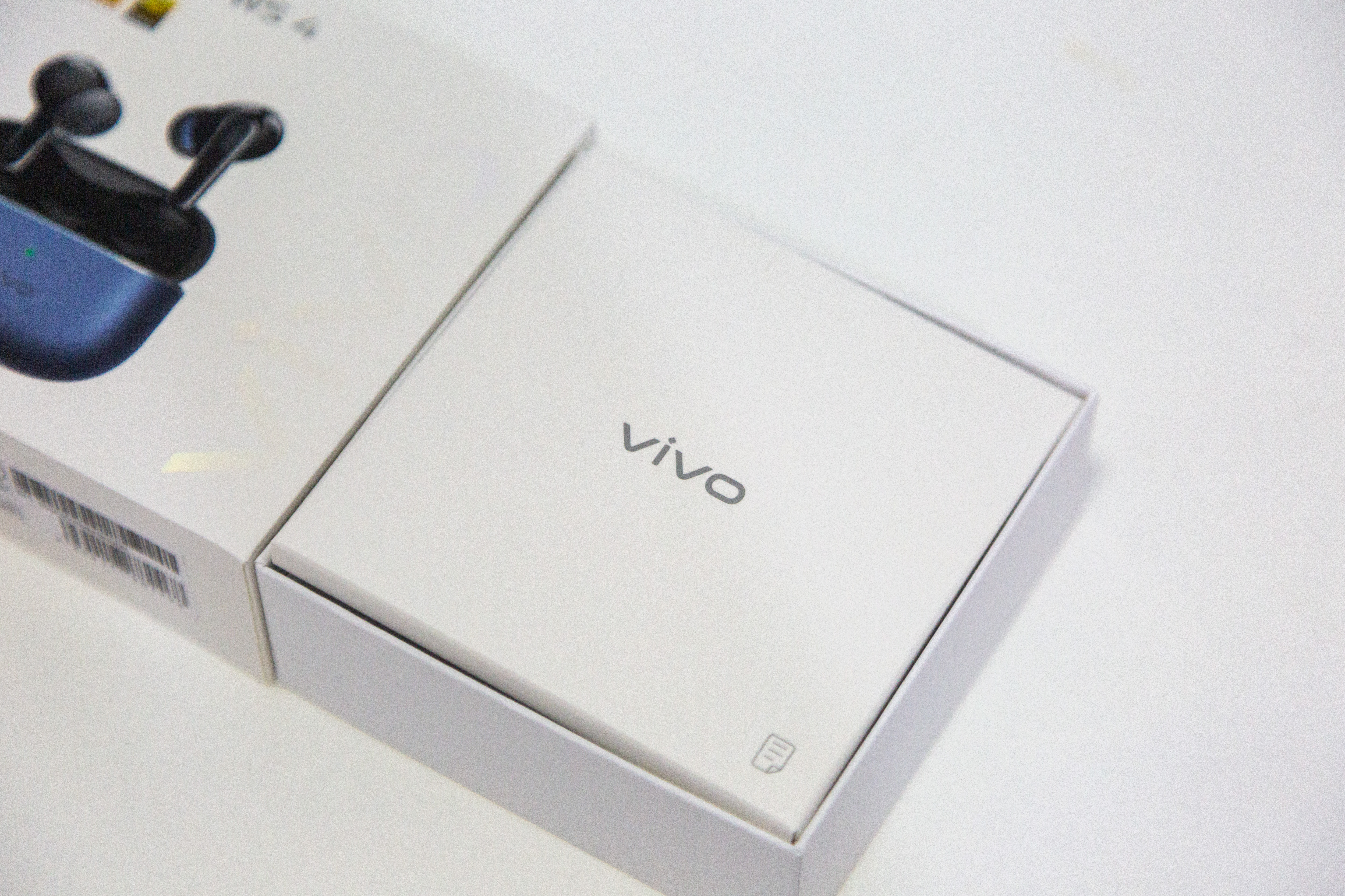 外包装上,白色的配色,方正的盒子,除了耳机产品效果图以及vivo TWS 4 Hi-Fi版标注之外,左上角的金耳朵以及Hi-Res AUDIO金标非常明显,也向消费者展示其不俗的音质效果。