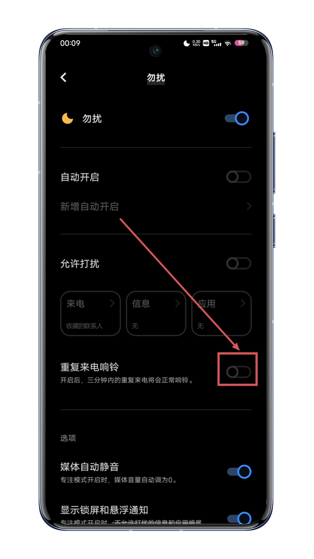 怕错过一些重要电话?可以开启重复来电响铃!开启后,三分钟内重复来电的电话就会正常响铃,就不怕错过它们了。