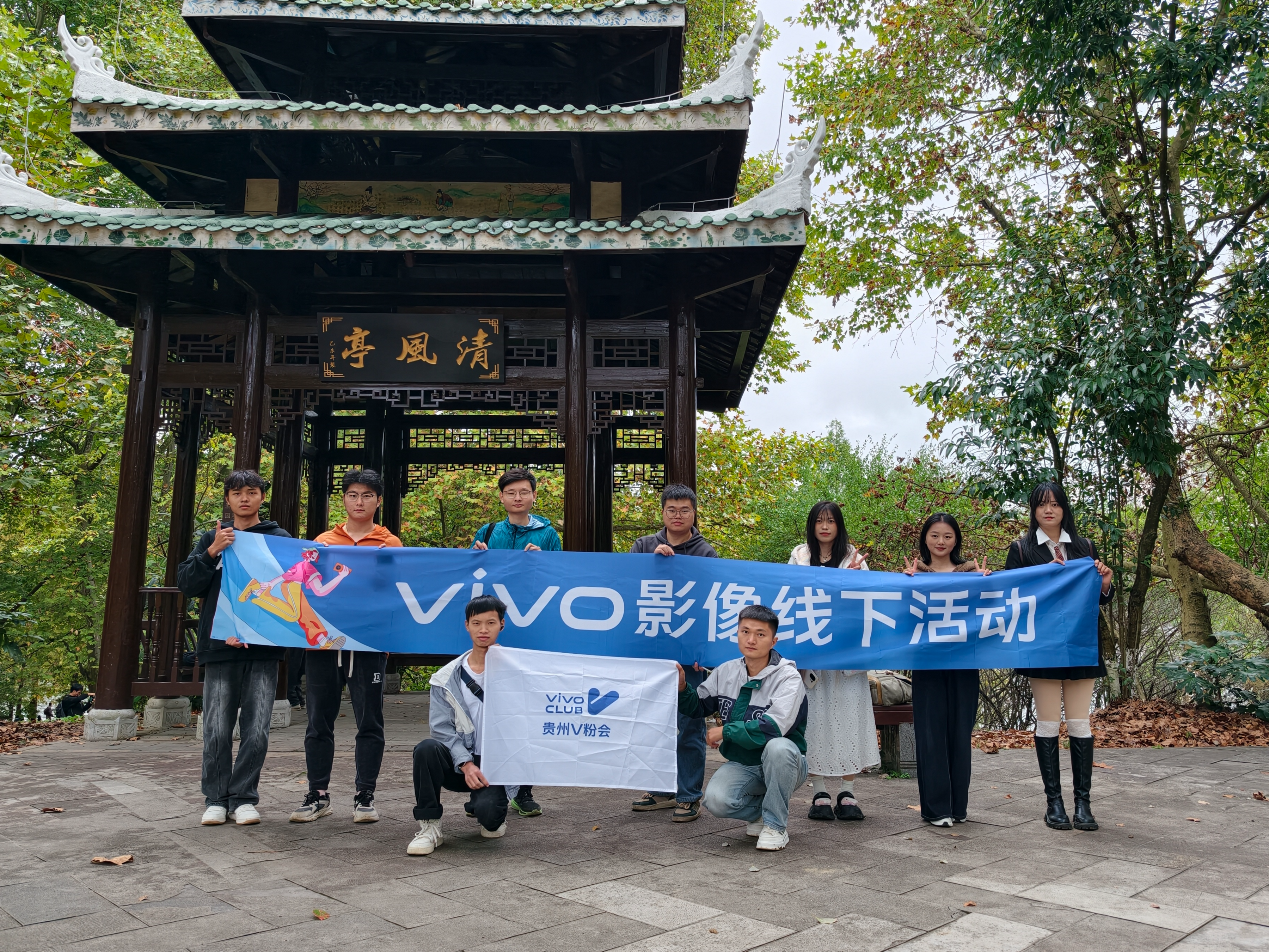 此次活动以秋天为主题,我们精心选择了风景如画的贵阳观山湖公园作为拍摄地点。在这个充满诗意的季节里,公园里五彩斑斓的秋色成为了绝佳的天然背景。几位 V 粉模特的精彩出镜更是为活动增添了不少亮点,他们在镜头前自信绽放,让大家深刻体验到了 vivo 人像模式的独特魅力。